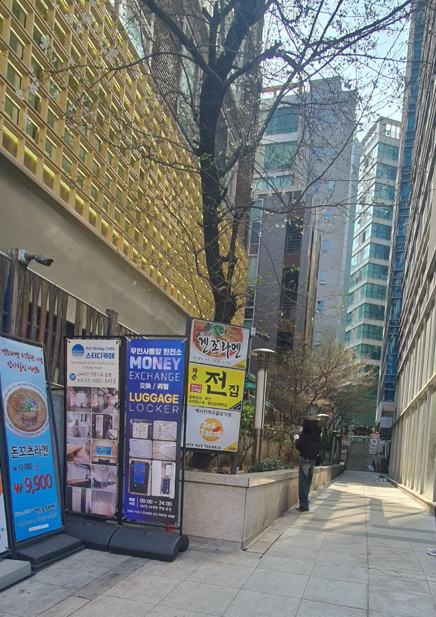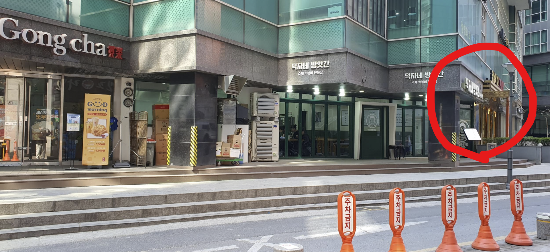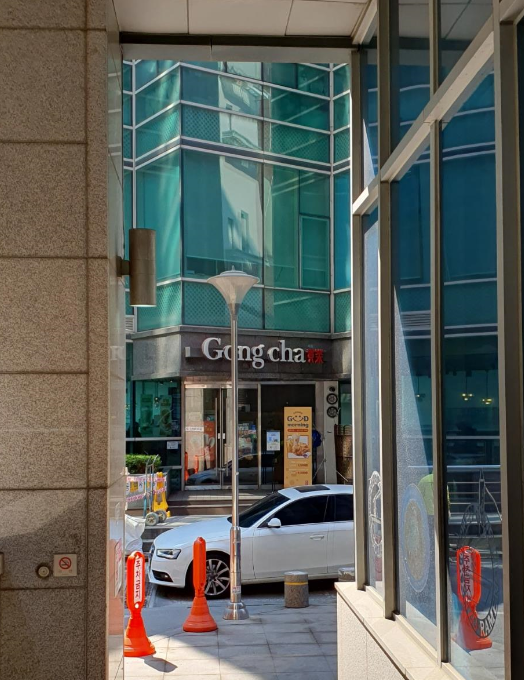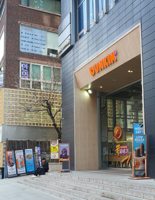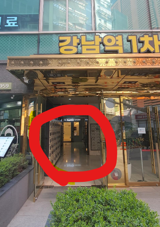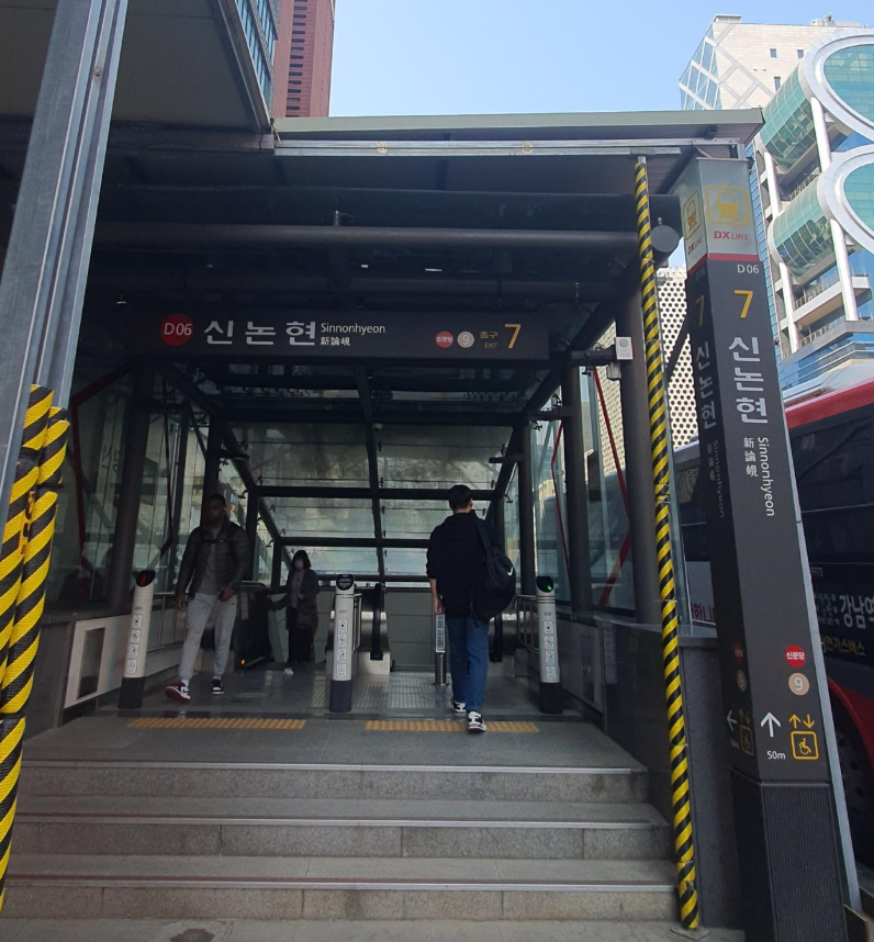 Desde la salida 7 de la estación Sinnonhyeon, siga recto 20 metros hasta ver Dunkin Donuts. Gire a la derecha en el pequeño callejón. Verá Gongcha más adelante y un edificio con una entrada con marco dorado a su derecha. Entre y siga recto.